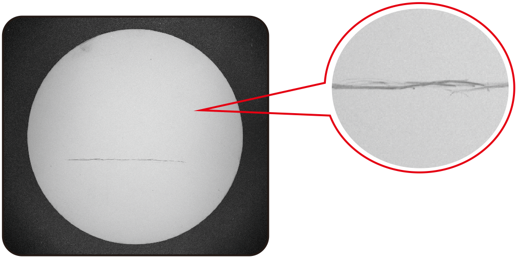 1、晶圓片表面缺陷方向多樣化,磨砂表面,環(huán)形低角度突顯出各個(gè)方向的缺陷;