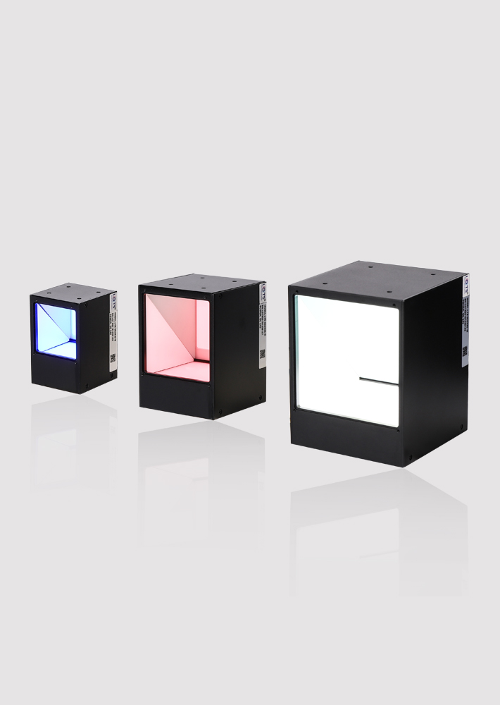 使用環(huán)形、條形等常規(guī)光源打光不理想,反光嚴(yán)重、對比度不夠高。綜合考慮使用同軸光源類型,同軸光能夠消除反光,且光路垂直,能提升表面凹凸對比。同時(shí)也考慮平行同軸光,平行同軸光比同軸光光路更加垂直。下面我們將對比分析同軸光源和平行同軸光源區(qū)別。