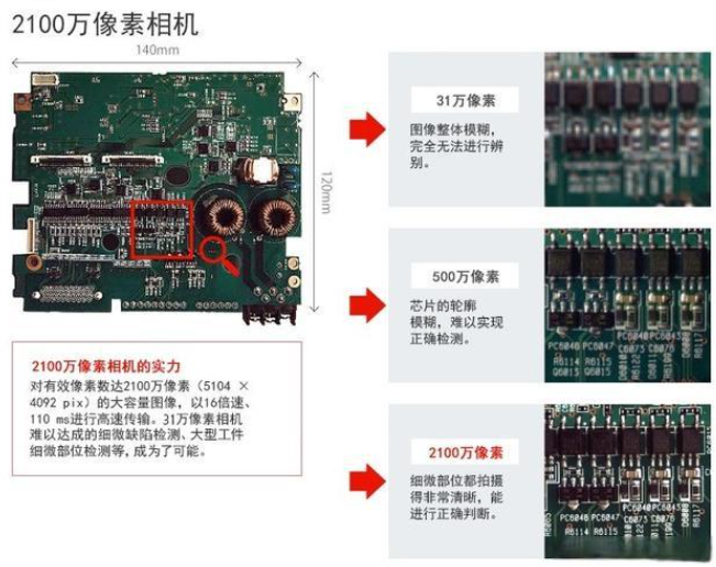 隨著智能手機(jī)、平板電腦等設(shè)備小型化的發(fā)展,電子設(shè)備行業(yè)對(duì)組裝精度的要求增高。支持實(shí)現(xiàn)同級(jí)超高像素?cái)?shù)的高分辨率大視野2100萬(wàn)像素彩色相機(jī),能夠清晰檢測(cè)芯片的細(xì)微部位,實(shí)現(xiàn)高精度的對(duì)準(zhǔn)。對(duì)于諸如電子部件這樣的細(xì)小部件,也能進(jìn)行正確組裝。