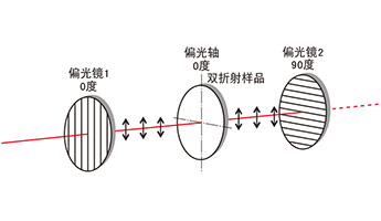 準備標準偏光鏡1(或激光)和偏光鏡2,調整使做為標準的直線偏光和偏光鏡2為消光狀態(tài)。