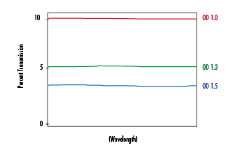 中性密度(ND)濾光片設計用于在特定光譜、紫外和可見光、可見光,或紅外部分平均減少投射率。ND濾光片有兩種類型:吸收性和反射性。 吸收性類型吸收不是通過濾光片透射的光線,反射性類型則將光線反射回其入射的方向。使用上述類型時應特別注意,確保任何反射光線均不干擾應用程序的安裝。ND濾光片通常用于防止相機和其他檢測器的高光或感光過度。