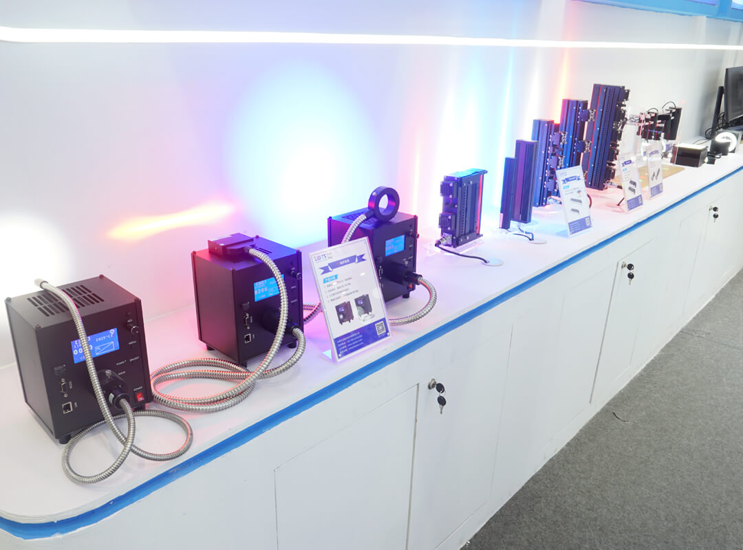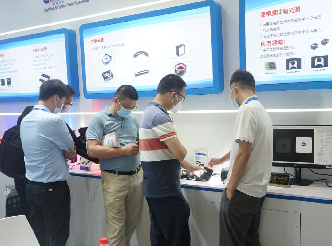 產(chǎn)品展示區(qū)有:光纖光源、線掃光源、點(diǎn)光集光源、結(jié)構(gòu)光源以及各種類定制新品。