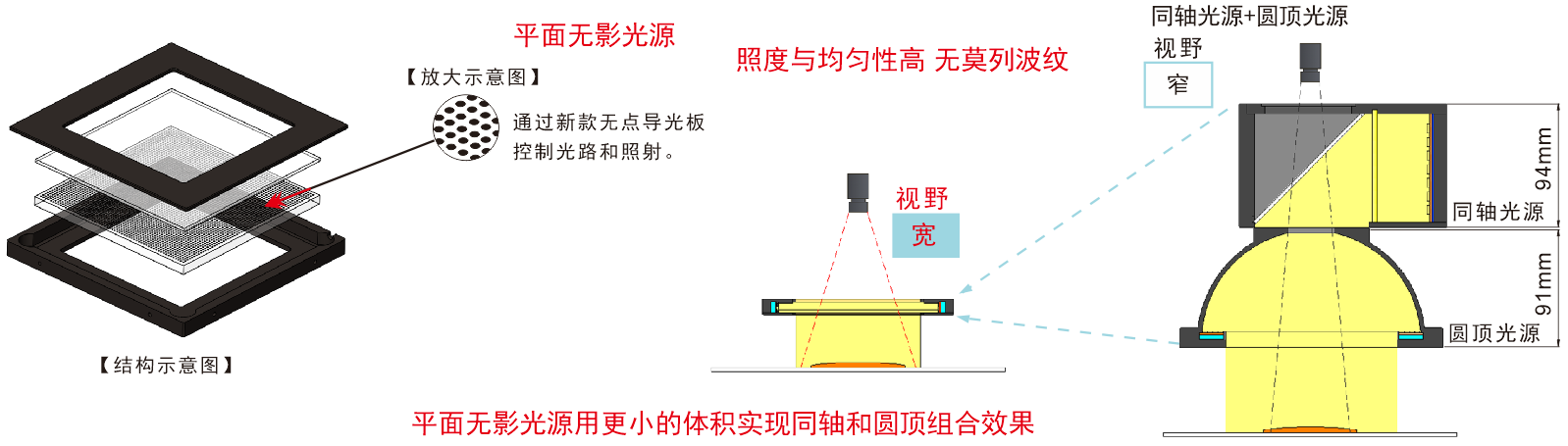 ●具有同軸與圓頂無(wú)影光效果