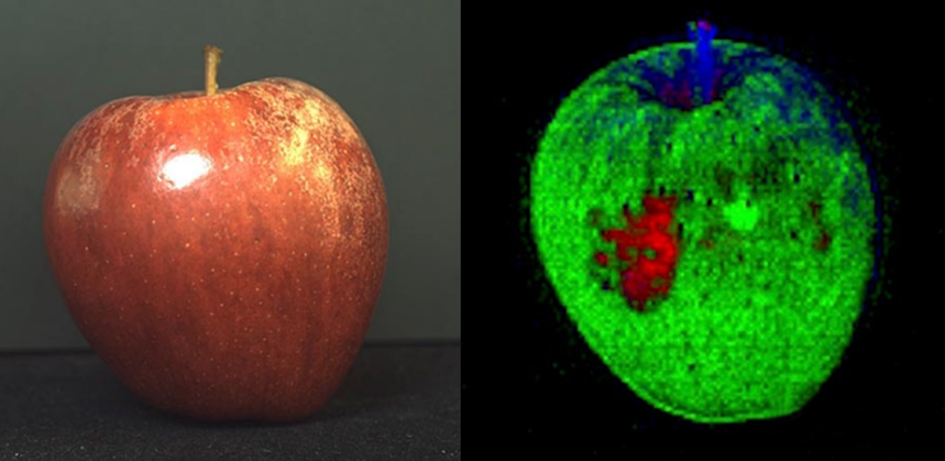 近紅外(NIR)波段范圍從700nm延伸到1μm。傳統(tǒng)的CMOS傳感器具有一定的NIR靈敏度,而在850nm以上具有增強(qiáng)靈敏度的版本正變得越來越普遍。NIR可以揭示水果、蔬菜、堅(jiān)果和肉類等食物中的腐爛、機(jī)械損傷和蟲害等非表面特征。NIR照明還可以穿透某些染料和油墨,從而可以通過印刷包裝檢查產(chǎn)品。在木材、紡織、紙張、玻璃、瓷磚和電子工業(yè)中也有應(yīng)用,并用于檢查圓柱形物品(如罐頭、瓶子、鋼筆等)甚至旋轉(zhuǎn)物體上的標(biāo)簽。