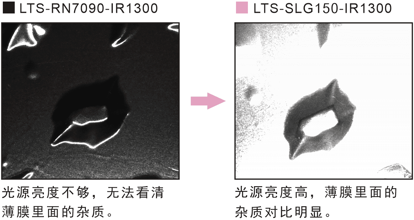 燈箱光源具有高亮特性,在相機(jī)低曝光時(shí)間下能滿足相機(jī)對(duì)于光源亮度需求,拍攝出隱藏在產(chǎn)品下的雜質(zhì)缺陷。