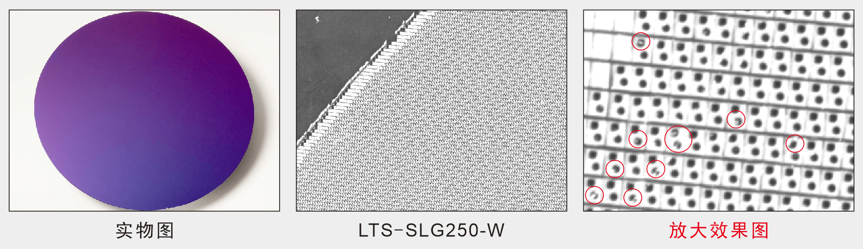 晶片加工后,表面可能會存在毛刺與殘?jiān)诒砻嬗绊懞罄m(xù)工藝。檢測此類較小的孔洞,需配合高倍鏡頭才能看到細(xì)小的毛刺,再經(jīng)過棱鏡模組鏡頭后通光會減弱很多,使用高亮光纖光源配合照射,亮度滿足,毛刺對比明顯。