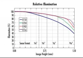 在成像平面上視場角中心點與全視場角的照度比值。通過比較不同位置上的相對照度值,可以了解光學(xué)鏡頭在整個視場范圍內(nèi)光線分布的均勻程度。這對于確保圖像質(zhì)量的一致性非常重要。