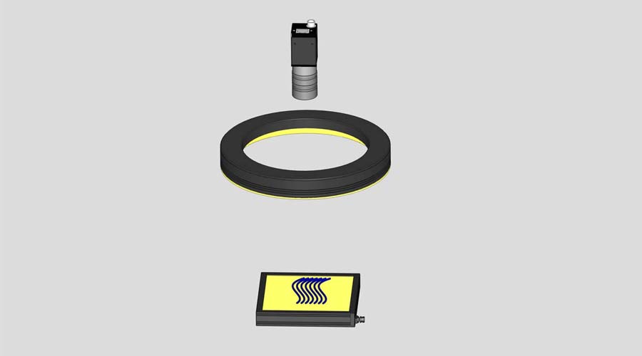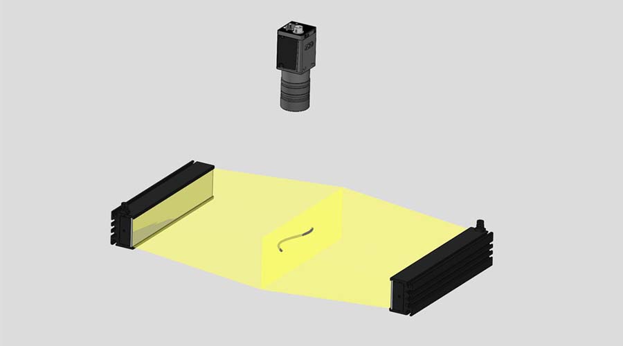 使用環(huán)形光源兩側(cè)面打光,線表面打黑,缺陷打亮,黑白對比明顯。