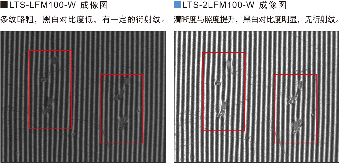 新升級2LFM系列比一代LFM的亮度提升30%以上,無衍射暗影,均勻性更佳;條紋更細更銳利,檢測精度進一步提高。