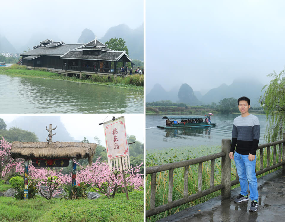 夜幕降臨,讓寧靜的山城充滿了色彩,彩虹燈光少了城市的喧嘩,多了份難得的寧靜。旅程的第一天在美麗的夜色中輕輕地飄過。“桂林山水甲天下,陽朔山水甲桂林,陽朔最美在興坪”,人民幣20元取景地—陽朔漓江。群山倒影山浮水,無水無山不入神,雨中的陽朔山水更有味道,群山均有煙霧繚繞,在朦朧的薄霧中,不知藏著一個(gè)怎樣的仙境,若隱若現(xiàn)的景象,讓人仿佛置身于仙境之中。