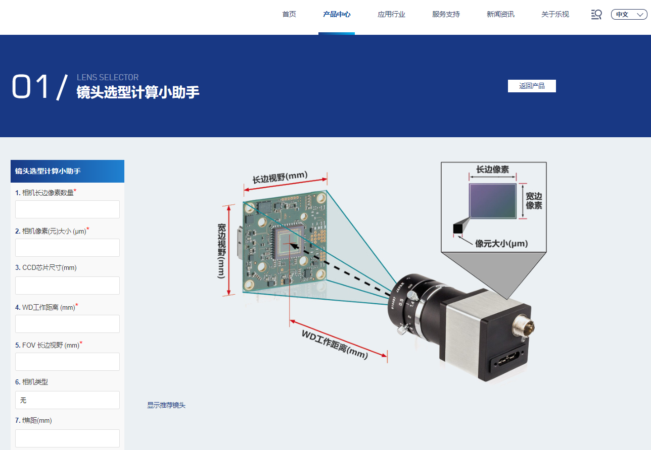 網(wǎng)站新增了鏡頭選型助手計算功能,方便所有工程師選型鏡頭相機(jī)。