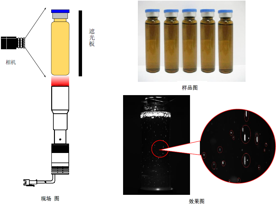 結(jié)果: 口服液內(nèi)部絮狀物、 白點、 白點、 雜質(zhì) 等不良, 不良, 清晰可見。