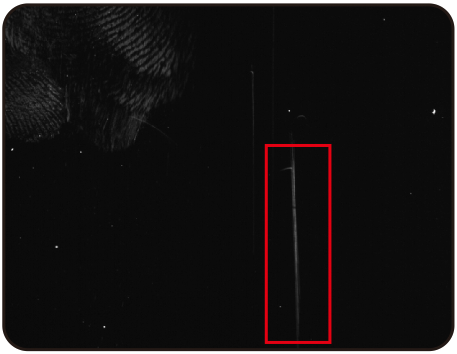 ★與常規(guī)線光效果對(duì)比。在線掃描相機(jī)下凸出豎方向劃痕類缺陷。