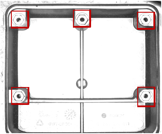 在視野大小200*150,檢測(cè)螺絲有無(wú)、是否偏位。