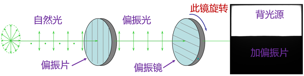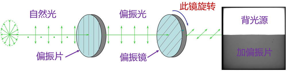 偏振光通過旋轉(zhuǎn)偏振鏡(檢偏器),光(強)方向發(fā)生變化。