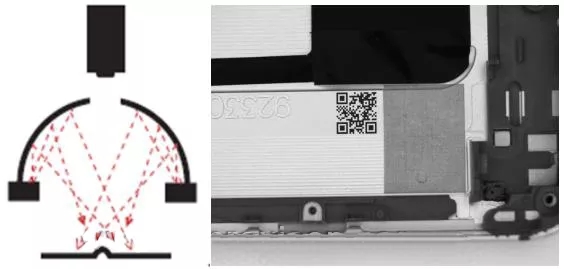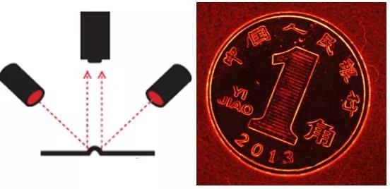 2. 暗場(chǎng)照明:暗場(chǎng)照明是相對(duì)于物體表面提供低角度照明。