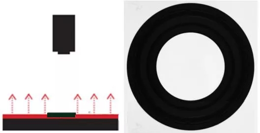 當(dāng)我們需要得到高對(duì)比度物體圖像的時(shí)候,這種類(lèi)型的光很有效。但是當(dāng)我們用它照在光亮或反射的材料上時(shí),會(huì)引起像鏡面的反光。通用照明一般采用環(huán)狀或點(diǎn)狀照明。環(huán)光是一種常用的通用照明方式,其很容易安裝在鏡頭,可給漫反射表面提供足夠的照明。