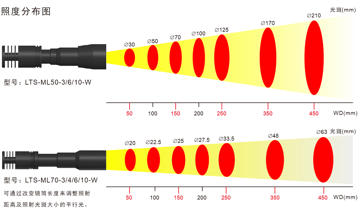 2.可以在不同的工作距離下調(diào)節(jié)到最合適的亮度和光斑大小