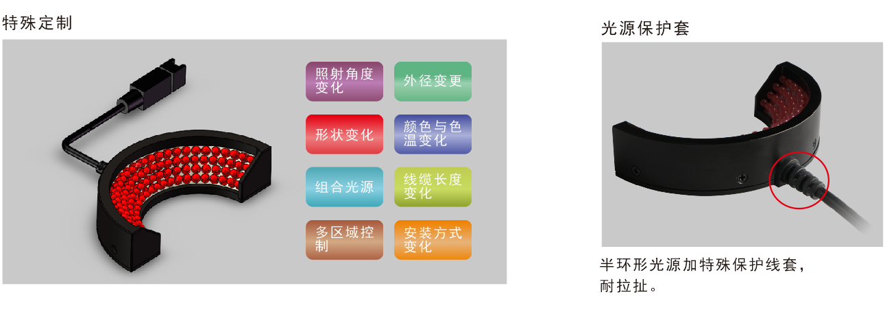 3.可應(yīng)用于多種形狀要求苛刻的工作環(huán)境,比普通環(huán)形光更加靈活