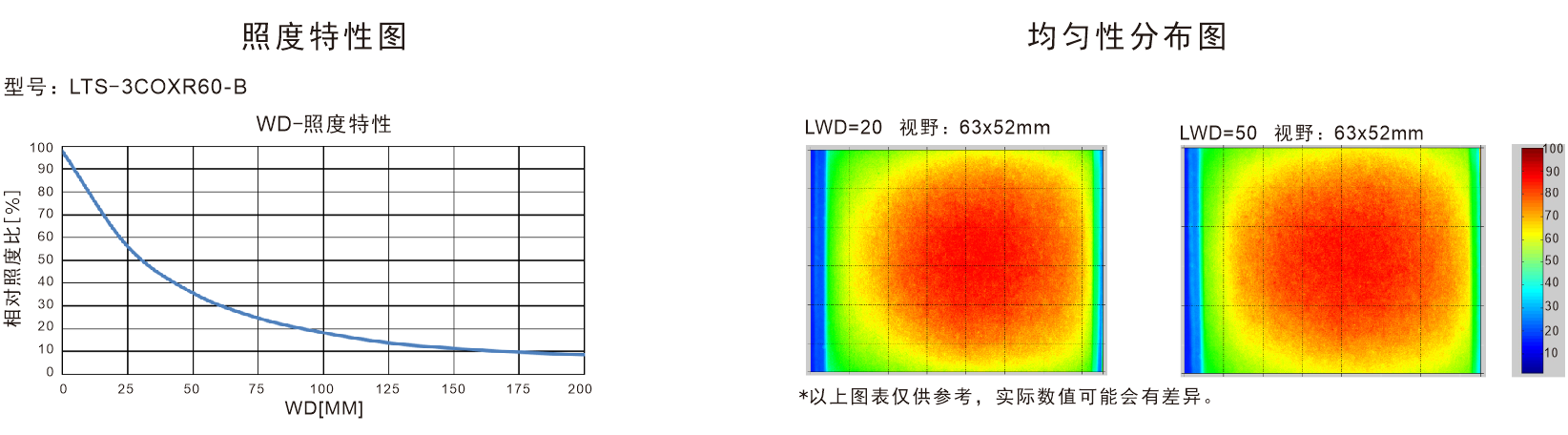 * 發(fā)光峰值波長/相關色溫:紅色:620-630nm,綠色:525-530nm,藍色:465-470nm,白色:6600K(色溫) |