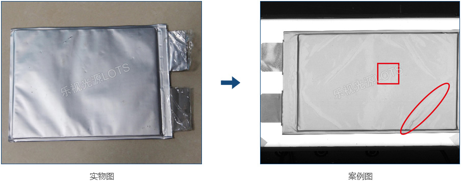 檢測鋰電表面臟污折皺、劃傷多種缺陷,電池表面光滑反光,使用隧道光源整體成像均勻,并且能夠凸顯表面特征。