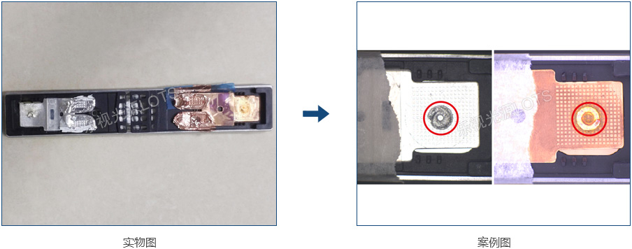 檢測同一個(gè)工位鋰電池陰極和陽極的焊印,使用圓頂光源對(duì)陽極焊錫比較明顯,陰極需均勻且有垂直光,圓頂配同軸光源可以有很好的效果。