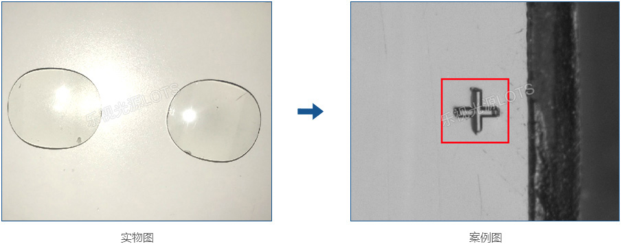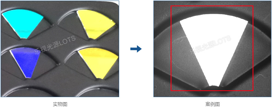 需檢測的MARK點隱藏在產(chǎn)品中,用點光源有高均勻性與高角度光屬性,配合同軸遠心鏡拍攝,對比度明顯。