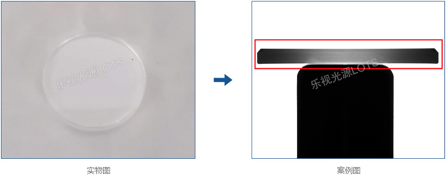產(chǎn)品需檢測透鏡厚度,考慮側(cè)面打光,因產(chǎn)品反光高。所以用能消除炫光的平行背光,成像對(duì)比度好。