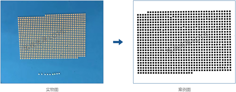檢測(cè)LED燈珠位置和輪廓,使用背光檢測(cè),燈珠芯片能清晰呈現(xiàn),利于分割每一片LED。
