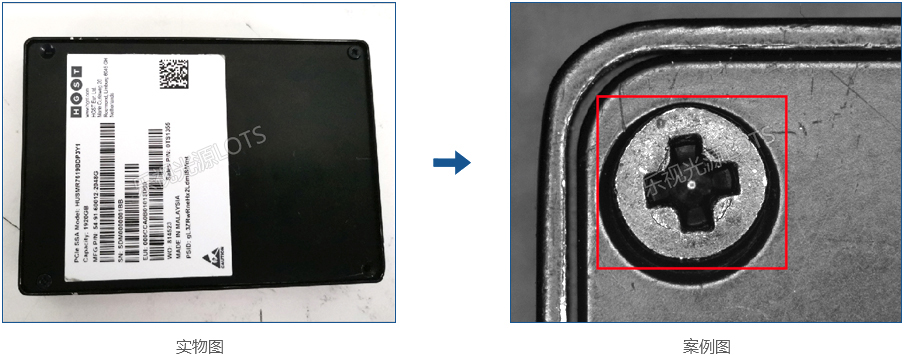 使用60度環(huán)形光照射,可打亮背景及螺絲,同時螺絲與圓孔間隙灰度較低,使螺絲邊緣清晰,對比明顯。