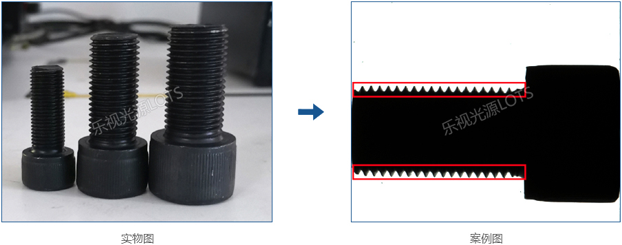 采用平行背光源,使邊緣更銳利,減少螺紋邊緣虛影,影響檢測精度的情況,對比效果非常好。