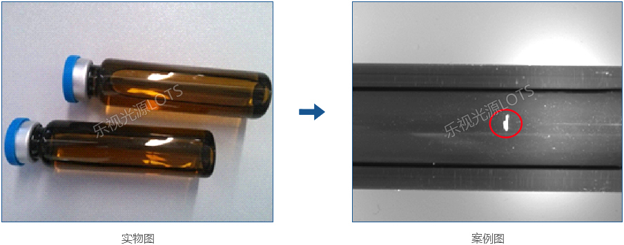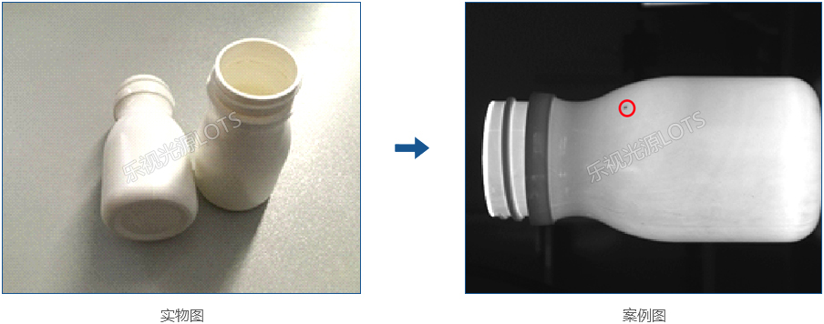 點光源強力透射,讓瓶內纖維雜質突出較大灰度值,實現(xiàn)檢測目的。
