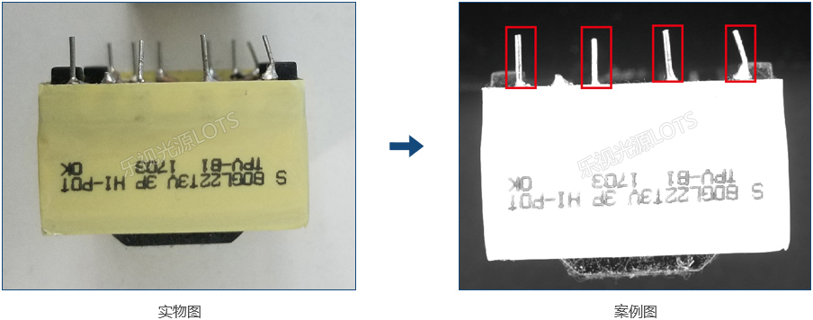 產(chǎn)品反光強(qiáng)烈,對均勻性要求高。使用低角度無影光,能使針腳分離且底 座面均勻的呈現(xiàn)。