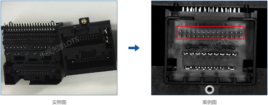 針腳是銅色紅色光對照射很容易打亮,采用紅色低角度光能兼容區(qū)分針腳, 使針腳獨立呈現(xiàn)。