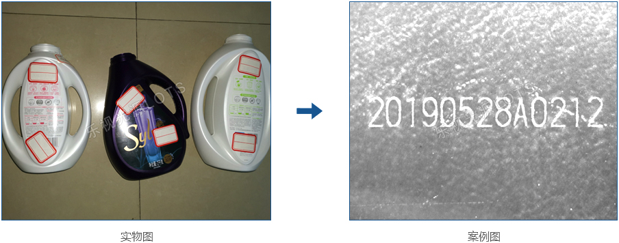 產(chǎn)品不是平整的端面,需檢測圓柱上面的字符。垂直拍攝影響太大,用條光源加偏振消除影響,效果明顯。